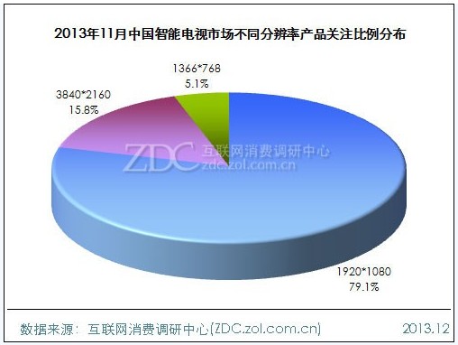 (图) 2013年11月中国智能电视市场不同分辨率产品关注比例分布