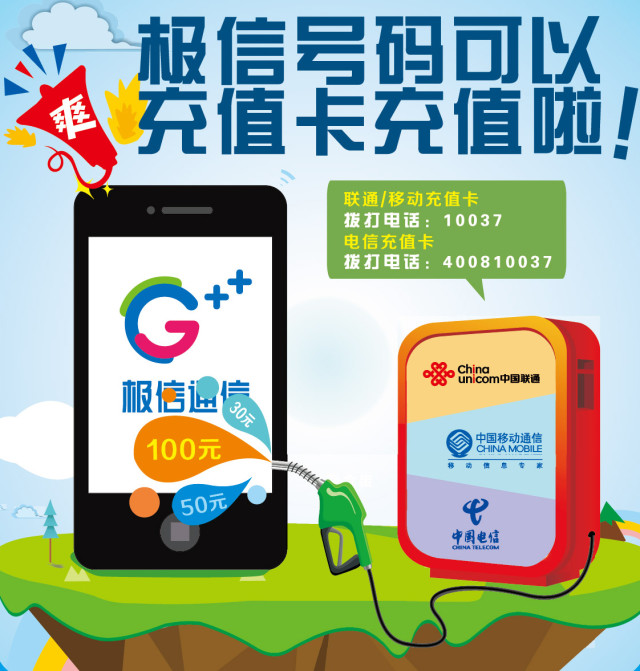 DVBCN数字电视中文网讯 近日,用户在拨打国美极信通信客服电话10037进行信息查询时发现,在语音菜单中加入了话费充值的提示。这个话费充值指的是市面在售的三大运营商充值卡均可通过拨打客服电话实现对极信手机号码进行话费充值。这是目前首家可支持手机话费可跨网充值的通信运营企业。