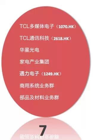 在具体调整上,根据相关资料显示,集团产品业务领域方面,将根据现有产业格局和新业务发展分为七个业务板块。其中TCL多媒体电子(1070.HK)、TCL通讯科技(2618.HK)、华星光电、家电产业集团和通力电子(1249.HK)五家企业维持原有的结构,同时新组建商用系统业务群和部品及材料业务群。