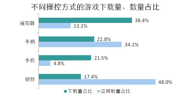 2014年游戏玩家最爱的操控方式是遥控器和手机,2014年游戏玩家最不喜欢的操控方式是鼠标。