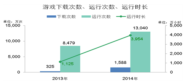 2014年游戏玩家的最爱主要是:益智休闲&体感类游戏,益智休闲类游戏下载量连续两年排名第一,体感游戏连续两年下载量进入TOP3; 2014年游戏玩家的新欢主要是体育竞技&棋牌类游戏,这两类游戏下载次数均大幅度环比上升,这两类游戏在2014年的表现提升最大。