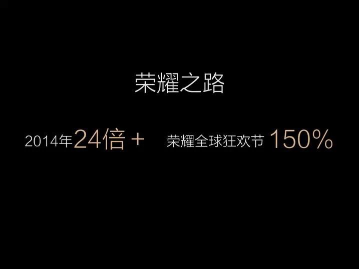 在2014年荣耀了快速发展,增长了24倍,进入了57个国家,最新统计到目前为止荣耀已经进入74个国家,我感觉我们的海外步伐有点快,所以,未来我们荣耀可能会在海外市场上聚焦一些重点国家,更聚焦。刚刚接触的荣耀狂欢节期间,我们有18个国家参与,号称“日不落狂欢”,从东半球到西半球,包括欧洲的国家,最西面的墨西哥等等,整个期间销售还可以,是2014年的1.5倍,还算不错的一个成绩,但相对这些我们更看中的是这一点,荣耀的品牌满意度,真正触动我的内心,真正让我感到荣耀的地方。