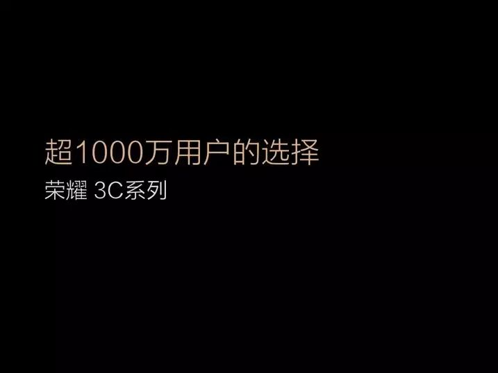 荣耀产品世界为世界,为年轻人把最新的技术,流行的设计方式带向中国,带向世界,让年轻人拥有更好的手机。当然,从刚才主持人介绍时也讲到了,今天我们还给大家带来一款新产品,在讲新产品之前,首先要感谢一下1000万使用荣耀3C系列的用户,你选择了一个非常棒的产品,给了荣耀一个机会,那么我们要向荣耀团队,荣耀3C的致敬,来向使用荣耀的用户致敬。最近在网上互动时,大家也期待着我们3C后续产品能够持续讲述“王者的故事”,那么我们今天就给大家带来了华为荣耀4C。我们希望这是一种王者归来,再续荣耀3C传奇的产品。