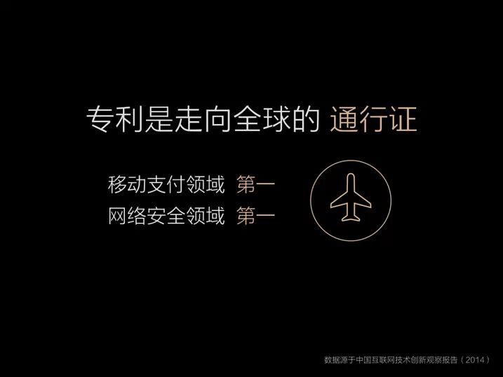 走向全球,专利是个通行证,我们在欧洲的经验和教训来讲,我告诉我们,中国企业走向世界要建立产权,我们要建立专利的意识。华为公司,大家知道我们是个通讯起家的公司,但在标准、通讯领域我们有很多的积累,有很多核心专利,今天我们基本上和走向全球时都是通过交叉授权的方式,在于通讯领域相关的,在移动互联网、移动支付领域,我们的专利属于比较领先的。另外,给大家开个小飞机在画面上,实际“飞行模式”这个专利的设计者李昌竹先生今天也在会场。