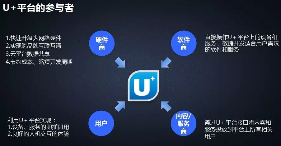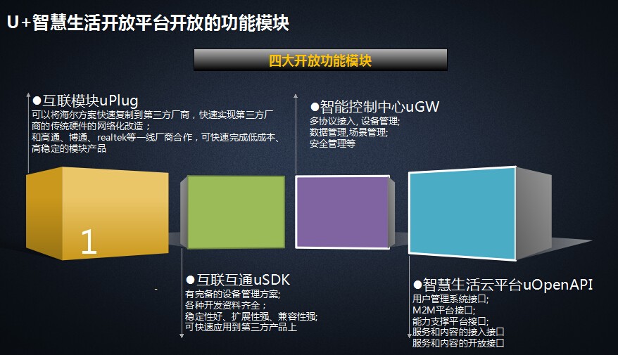 王总强调,海尔U+APP只是用户的交互接口,用它是为了体验U+平台提供的服务和产品,海尔U+平台是完全开放的,用户可以通过SDK接口可以用平台上的硬件和软件。通过搭载海尔开放的SDK可以把智能路由器和智能家居完美结合起来,海尔U+APP与海尔强大的智能家电的优势结合起来,所以在智能家电领域U+APP有独到的优势。