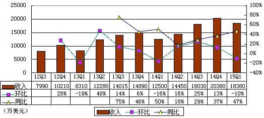 优酷土豆第一季广告净营收8.927亿元(约1.44亿美元),同比增长43%,同比增长主要是由于来自品牌广告的业务增长及广告主平均投入的增加。