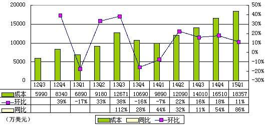 优酷土豆第一季成本为1.83亿美元,较上一季度增长11%,较上年同期增长86%。