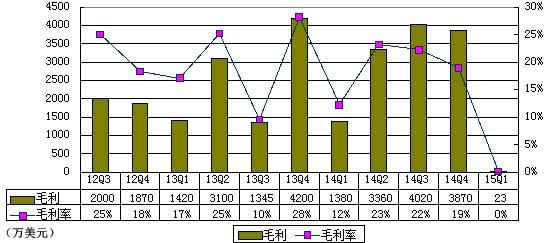 优酷土豆第一季度毛利为150万元(约23万美元),上一年同期为1.321亿元(约合2130万美元);优酷土豆第一季度毛利率仅0.13%,上年同期为12%,上一季度为19%。