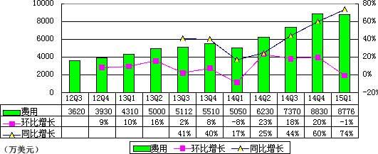 不按照美国通用会计准则计量的产品研发开支为1.2亿元(约合1940万美元),上一年同期为6200万元(约合1000万美元),这一增长主要是由于来自无线、搜索、社交、付费和互动直播等领域的人事相关费用增长。