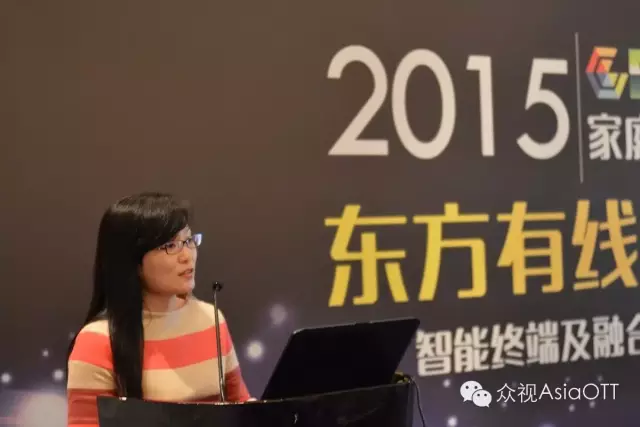 会议上,上海联彤网络通讯技术有限公司高级总监叶青女士发表了名为“家庭娱乐中心体验报告—TVOS的智能机顶盒“的演讲。