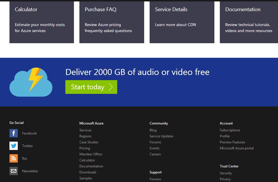 Azure在官网上推出2000GB的Audio&Video免费分发服务,基于竞争对手的压力,Azure也逐步开始推出一年免费账号的策略
