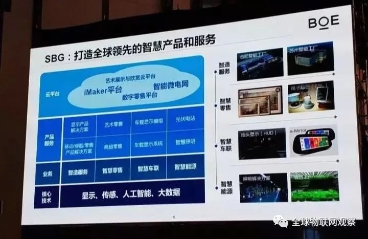 所以京东方说的“5年内拓展100个以上的物联网领域细分市场”,就是在扩展面板应用范围。“提供至少60亿个物联网智慧端口”则指明了转型方向,从单纯的显示器件生产商向软硬件解决方案的服务商方向转变。