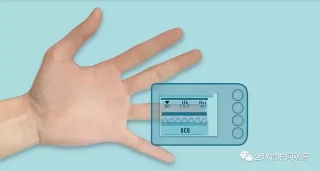 京东方提供的无创血液监测产品只有打火机大小,可以检测14个体征指标和血液参数。目前将数据上传云端后,系统会向app推送检测报告和健康指导建议。