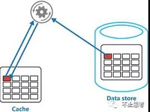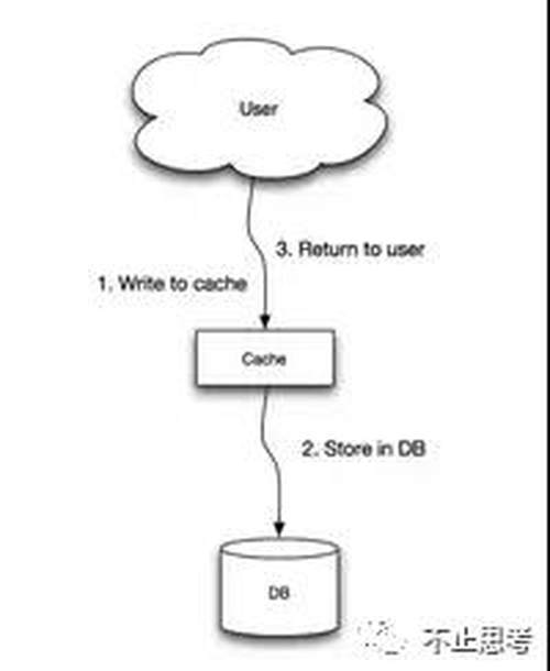 这个模式其实就是将 缓存服务 作为主要的存储,应用的所有读写请求都是直接与缓存服务打交道,而不管最后端的数据库了,数据库的数据由缓存服务来维护和更新。不过缓存中数据变更的时候是同步去更新数据库的,在应用的眼中只有缓存服务。