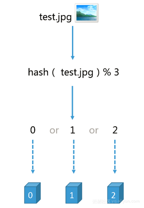 用hash做缓存,假如有三台服务器,1,2,3,有三万张图片,我想将图片平均缓存到我三台服务器上,一个服务器大概一万张,怎么去实现这个办法呢,可以用hash来取余数进行操作,加入我们是以图片的名字作为key进行hash计算,hash (图片名称)%N 其中N为我们服务器的个数,我们将hash(图片名称)这一部分进行计算后得到的是一个正数,然后除以服务器的数目进行取余数,结果将会是0,1,2三个数,对应我们的服务器的编号,当我们作为客户端去请求图片的时候,图片已经进行过hash运算了,直接找到对应服务器的编号进行图片的访问,这样解决了我需要遍历所有的服务器进行查找。