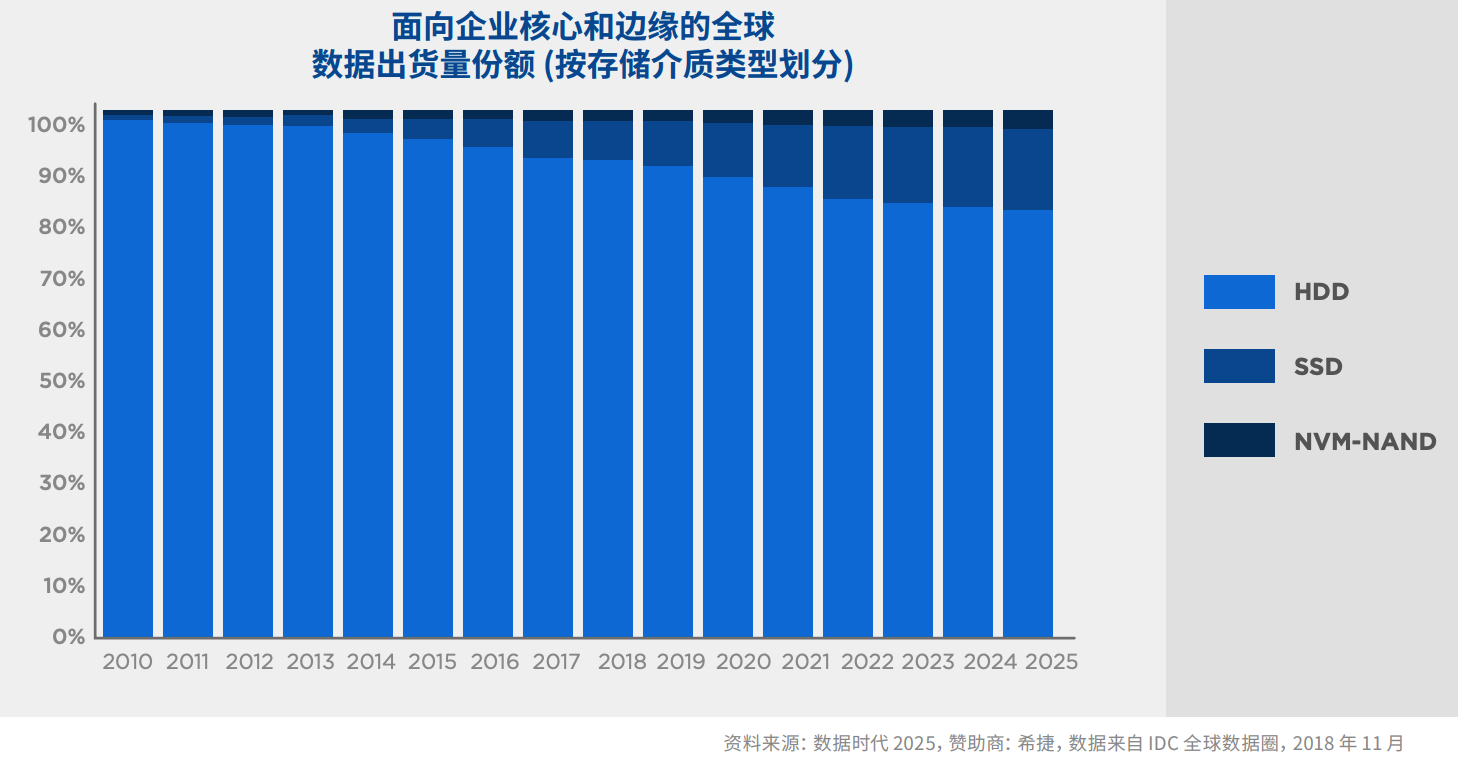 白皮书显示,在全球的数字化转型进程中,中国数据圈到2025年将以48.6ZB的数据量成为全球最大的数据圈,而未来越来越多的数据将由终端转移到边缘、核心位置,其中HDD依然是主导的存储介质。