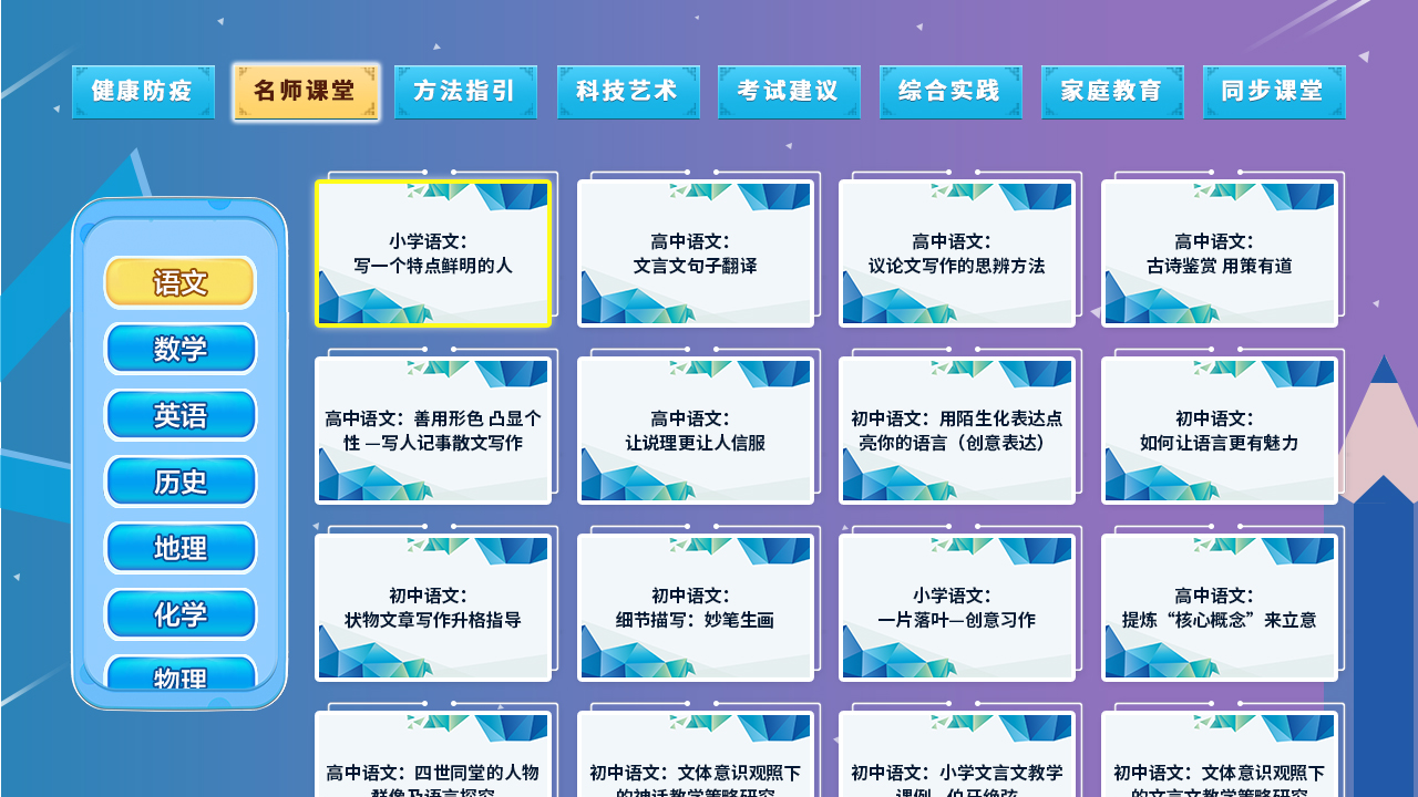 在内容安排上,“空中课堂”上线的优质课堂为深圳市教育信息技术中心面向全市名师录制的600节优质课程资源,内容包括名师名课、教学方法指引、中考高考建议、科技艺术、综合实践、家庭教育等,市教育科学研究院提供的高中、初中学科教学课程资源也平移到了天威4K电视“空中课堂”子栏目同步课堂,提供点播与录播结合的24小时课程教育服务。“空中课堂”还新增加了防控疫情的知识专区,帮助大家了解疫情防控的科学知识,并增加了丰富多彩的爱国主义教育影片供广大师生收看。