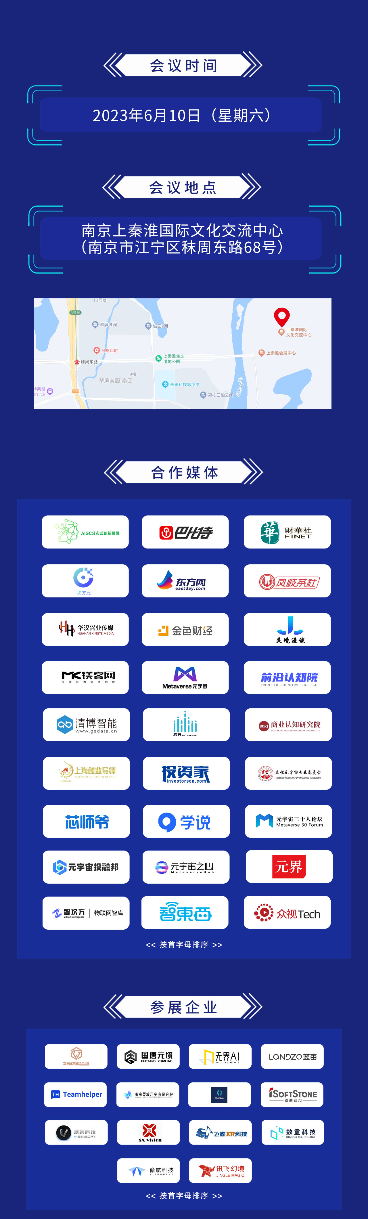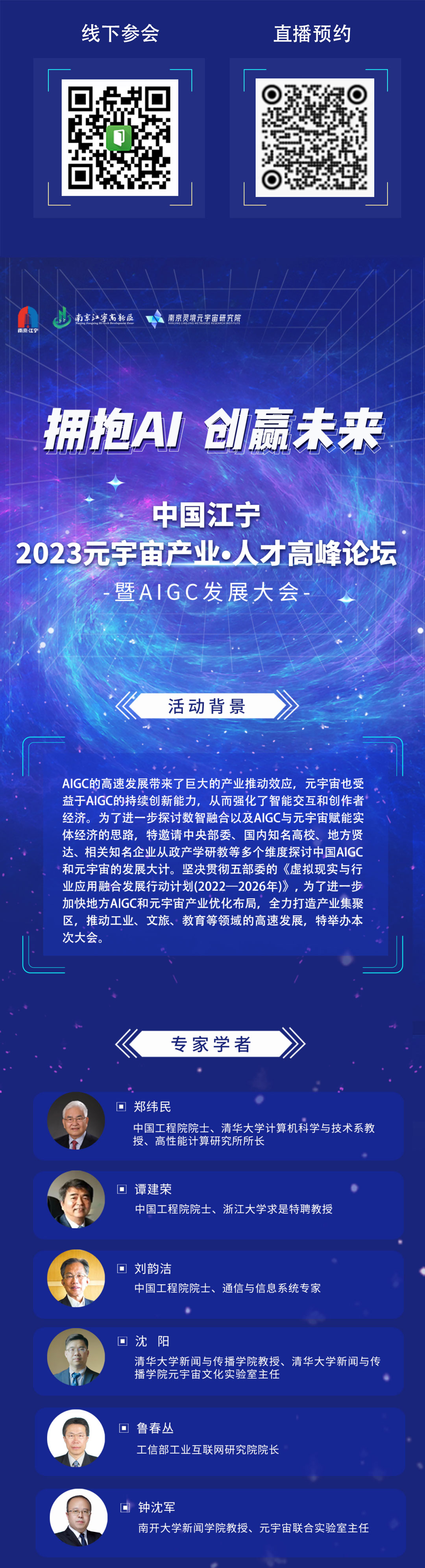 2023年6月10日(星期六),中国江宁2023元宇宙产业·人才高峰论坛暨AIGC发展大会将在南京上秦淮国际文化交流中心举行。