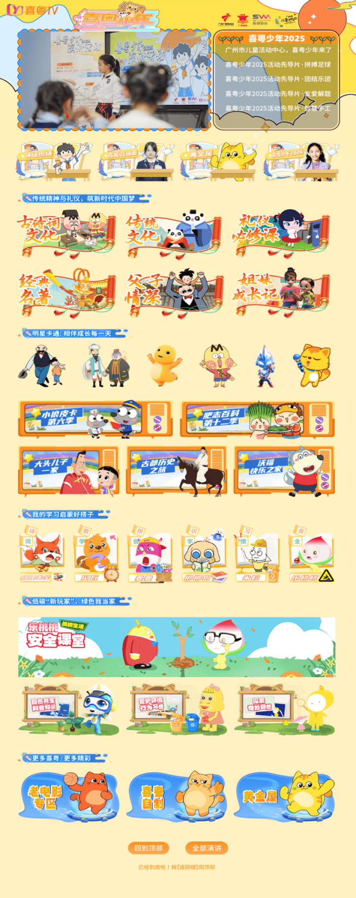 喜粤TV“喜粤少年2025”专区页面(具体以实际上线页面为准)