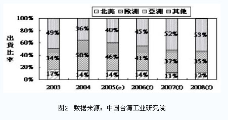 2006年底,亚洲地区有许多电信业者开始推出宽频电视服务,包含香港的PCCW’s NOW Broadband TV、日本的Yahoo BB Cable TV。而至2007年初,欧洲地区的法国电信、Free9 Telecom、西班牙的Telefonia、Festweb、英国的Video Network等数个电信业者,均在数字电视开播的风潮下,搭配网络技术,在频宽增加的发展之下,开始提供数字电视服务。由于亚洲地区拥有较多的宽频接取用户,成为未来IP STB的主流市场,其次为欧洲地区。(见图2)