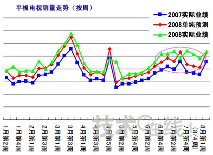 奥运会商战期间的平板电视销量方面,由于北京奥运会而增加的销量约17万台。没有达到当初预测的增长25万台。奥运会推动平板电视销量增长的期间为08年6月23日~08年8月4日的7周时间。该公司当初预测的奥运会商战期间是截至08年8月11日的,但最后1周未能观测到奥运会带来的特殊需求,因此增长停滞。此外,受酷暑影响,部分需求转向空调也使得平板电视实际销量低于当初预测。
