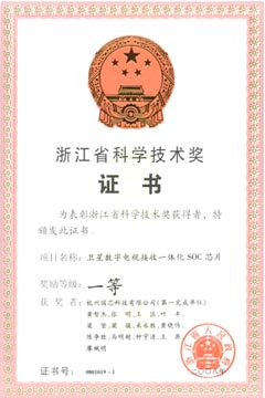 2009年2月11日由浙江省人民政府在省人民大会堂举行的颁奖活动上,杭州国芯科技有限公司(NationalChip)上报的“卫星数字电视接收一体化SOC芯片”项目,被评为2008年度浙江省科技进步一等奖。
