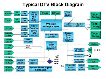 一般来说,数字电视可以被分解为不到10个主要的模块:显示器(和驱动器)、核心媒体引擎、音频编解码和处理、视频编解码和处理、调谐器、接口模块和电源。对每一个模块的绝对性能要求由你最喜欢的座位的舒适体验的性能水平来定义。