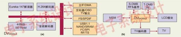 图2:NX3300的结构框图(a)和T-DMB手机应用方案(b)