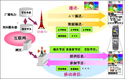 DVB-H下行利用广播电视网络传送高质量的电视节目,上行利用移动通信网实现交互,和DVB-T相比,DVB-H的功耗更低、移动接收和抗干扰性能更好,更适用于移动电话、手持计算机等小型便携设备。DVB-H的逐步推广体现了广播电视网和移动通信网的融合。
