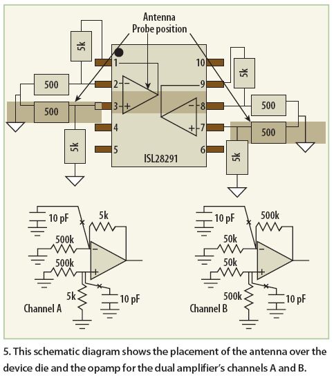 以往这些研究证明,反馈电阻值更高,RFI电容的增加以及使用固有的更线性的MOSFET 输入器件都降低了射频干扰。但是还应该在近场条件下评估这些结果,以确定对附近存在很多不同电路分支的现代无线设计的有效性,包括天线。