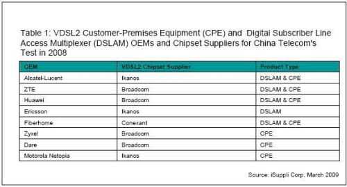 iSuppli公司认为,凭借DSL技术在中国的统治地位,VDSL2目前似乎准备争取成为中国下一代宽带接入的主要标准。