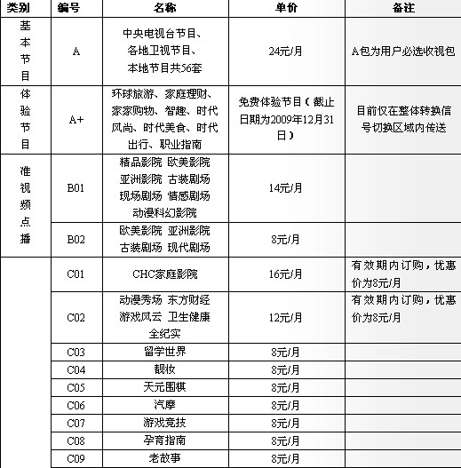 2、推出高清礼包组合,高清机顶盒+智能卡+《新视觉》+《CHC高清电影》=2888元。