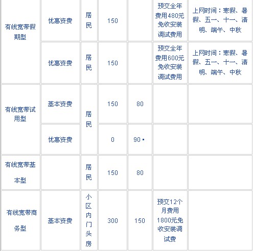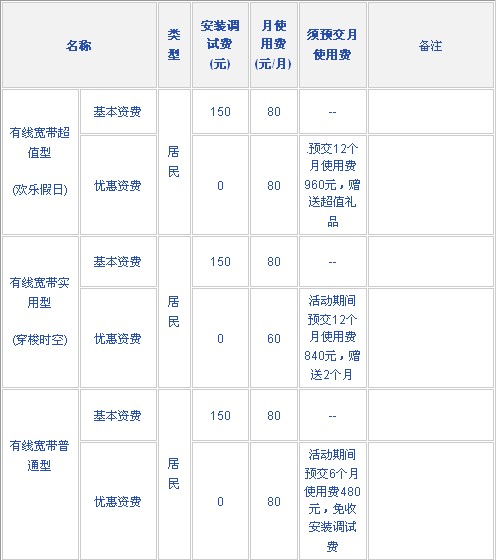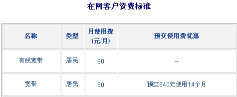 注:CM接入方式须加收100元设备押金,该押金可充抵等额续费