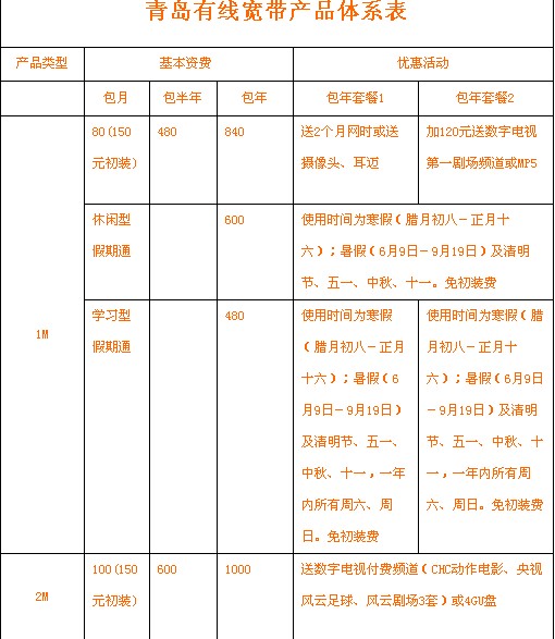 活动期间推出的7大优惠项目还是在三月份的“宽带连万家,有线通天下”活动中的优惠资费。都展示了青