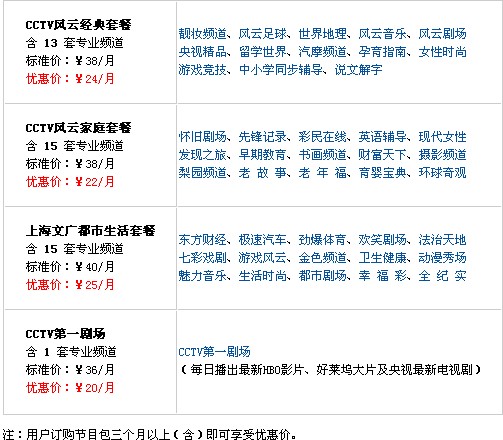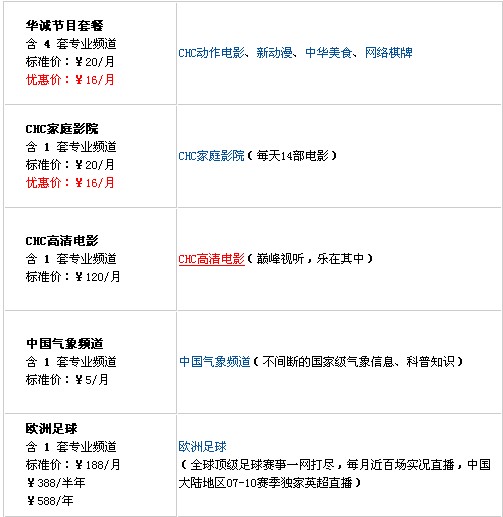 三重好礼:精彩专业付费频道低至0.6元/月,其中共有60多个精彩专业频道任你选