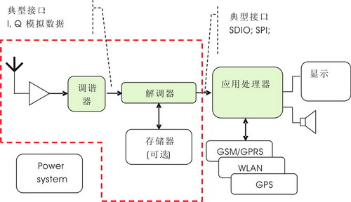 从应用模式来看,移动数字电视终端可以分为3类:笔记本上的应用,重点是DVB-T;手机上的应用,重点是DVB-H、T-DMB;专用设备(如PMP)的应用,重点也是DVB-H、T-DMB。通常来说,移动数字电视终端包含了4个关键部件,天线、调谐器(Tuner)、解调器(De-modulator)和应用处理器。图1 显示了一个典型的移动电视终端的架构。