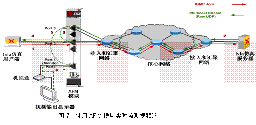 另外一种常见的应用场景是对网络中存在的IPTV组播流和单播流能够进行被动实时监测并能够评估相应视频流的视频质量。IXIA独特的视频流提取模块AFM支持该特性的测试(见图6)。