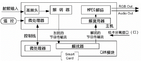 数字电视的条件接收系统(CAS,Conditional Access Systems)是用于对数字电视用户进行节目授权和管理的部分,是数字电视广播中的重要组成部分之一。而其中采用开放的机卡分离结构又是条件接收系统的未来重要发展趋势。机卡分离是通过在用户接收终端上定义了一个公共物理接口以及相关的接口通讯协议,将通用的适宜于大规模生产的电视接收系统与私有的CAS 管理系统分离开来。目前,机卡分离模式在国际上通行的实现方法是:采用一种与便携电脑上的PCMCIA 插口类似的物理接口来实现。欧洲的DVB 组织发布的标准称之为DVB-CI,美国也有一个类似的标准称之为POD。事实上新的PCMCIA 标准文档中已经将此两种接口的定义包含进去了。而这其中装载条件接收处理内容的PCMCIA 卡简称为数字电视条件接收卡,可以简称为CAM(Conditional Access Module)。