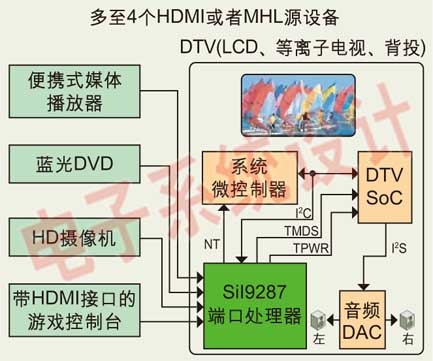 随着消费电子技术的发展,家庭影音娱乐系统已经不再是简单的电视机+DVD 模式,而是通常包括电视机、机顶盒、蓝光DVD、硬盘存储播放器、PS3或Xbox等等。目前的HDTV通常都有不止一个HDMI接口,一些中高端电视开始有3个或者4个HDMI接口,因此,高清晰数字电视(HDTV)的主芯片发展趋势是集成一个HDMI接口,外加低成本的开关以实现3至5个源端口的扩展。