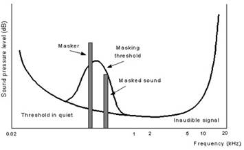 它们使用了三大关键技术。当要剔除低于最小听觉阈值的声音时,使用频率屏蔽技术。当一个大幅度信号非常接近另一个较低幅度的信号时,使用幅度屏蔽技术。从而小信号被大信号屏蔽,因此小信号将不被编码。最后,当不同音调在时间上非常接近时,使用时间屏蔽技术。从而可屏蔽掉在一个较柔和声音前或后的高音,并把它丢弃掉。