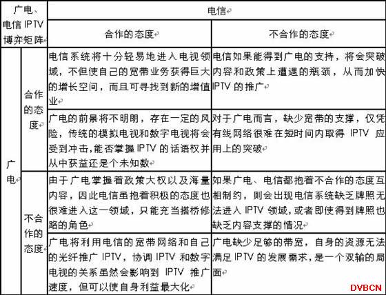 广电和电信长期存在着IPTV的话语权之争,由于担忧IPTV对传统电视广播领域的冲击,广电部门对IPTV运营牌照执行严格的控制政策,部分地方广电系统也对IPTV的发展进行抵制。