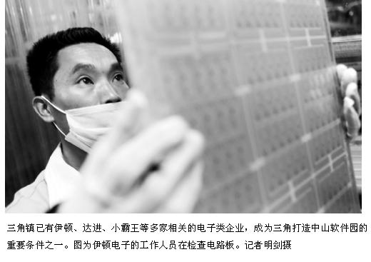 除了借“脑”广州、深圳等技术先进城市之外,三角镇有着产业优势。黄泽科说,三角镇已有伊顿、达进、小霸王等多家相关的电子类企业,同时还有正在建设的数码城,可以说数字家庭产业的优势明显。同时,位于三角周边的顺德、黄圃等是广东省内家电制造业最集中的区域,美的、格兰仕等大批知名家电企业及专业配件厂商云集。三角的纽带地位,利于科研成果于第一时间转化规模化产品,同时迅速应用于珠三角各大城市家庭。