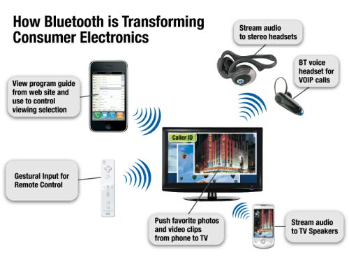 通过Broadcom蓝牙技术实现手机和耳机与电视机的互动,LG公司可利用已有的蓝牙设备生态系统、为消费者提供先进的音频流媒体和数字媒体共享功能。Broadcom的技术还使手机为未来应用做好了准备,如将手机用作电视机遥控器,或用作QWERTY键盘输入设备,从而使用基于电视机的widget和电子商务应用。