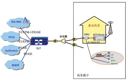 图2 EPON承载IP接口的GSM/WCDMA基站回程