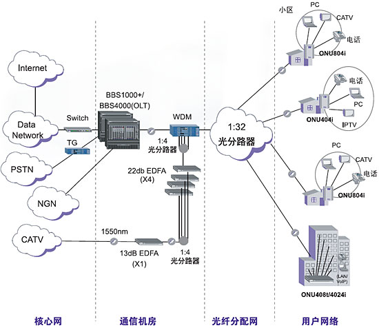 随着internet的迅猛发展,网络用户对网络宽带的需求日渐增长。为了满足市场的需要,通信网的主干部分已经发生了巨大的变化,而一直变化较少的传统接入网却成为整个网络中的瓶颈。建设“有源无源一体化”的光纤接入网将成为一种趋势,而光纤介质无可比拟的带宽拓展潜力,以及光纤接入方式下覆盖半径的明显优势,也使得运营商在发展多种业务领域和降低运维成本方面更加具备优势。