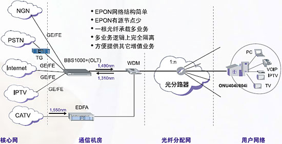 ---EPON技术能够有效降低网络建设中的设备成本、线路成本和维护成本,代表了光纤接入大规模应用的发展方向。且作为光纤接入网的重要解决方案,EPON技术已经得到国内外运营商和广商的支持和认可。