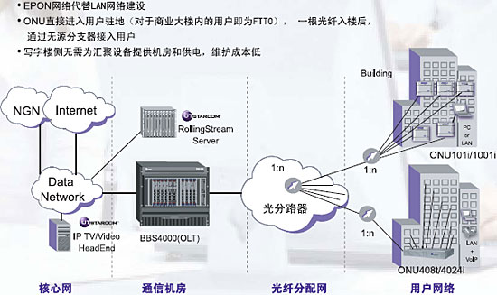 从2003年开始,UT斯达康始终领导着EPON技术的发展,陆续推出了众多高可靠、高性能的OpticalXpress系列EPON产品。它提供了更高的接入带宽和更好的QoS,能够有效降低投资成本,是理想的最后一公里光纤解决方案。