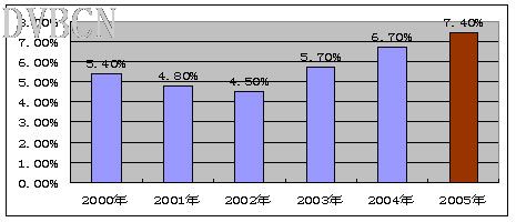 图1:2000年-2005年娱乐节目在所有节目中的份额[2]