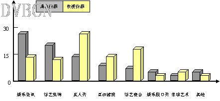 图2:2005年各类综艺娱乐节目的播出与收视份额[3]